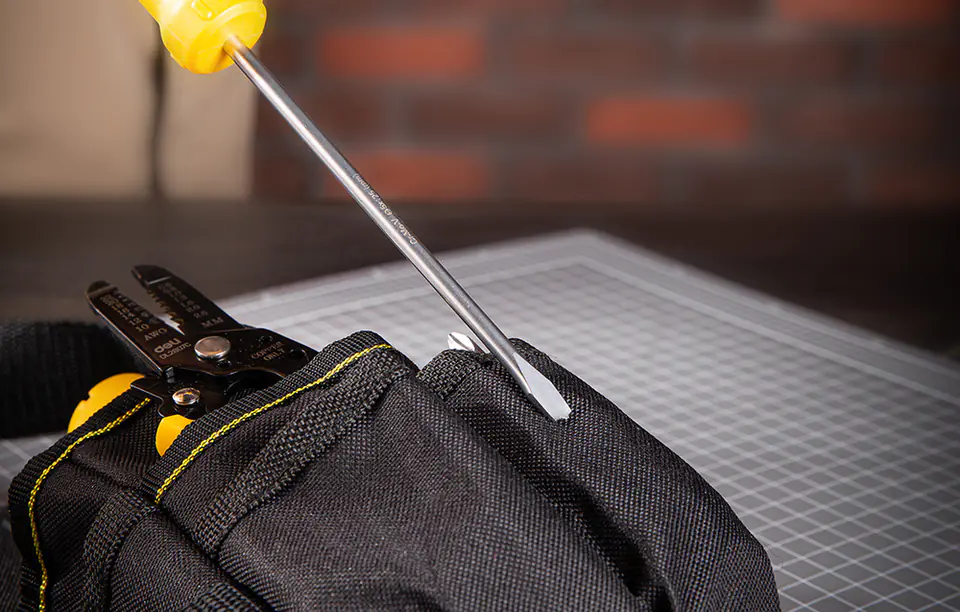 The Deli Tools EDL430003 tool bag is the perfect solution for people who often work in different places. It allows convenient storage and transport of the most important utensils - you have several capacious pockets at your disposal. You can easily fit in them, for example, a meter, a screwdriver, a hammer and pliers. In addition, special compartments will help you organize your space and keep order.