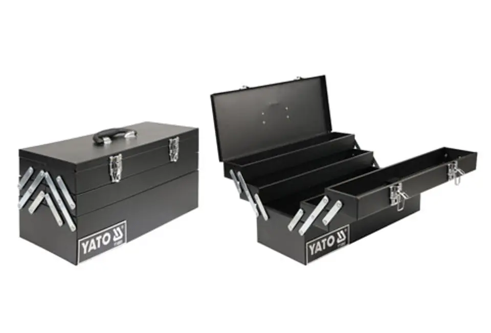 Tool box made of 0.6 mm steel sheet, powder coated.