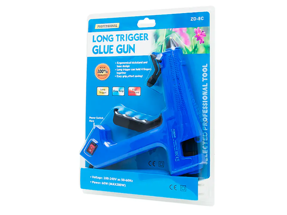 Gun / fusing machine for glue one-component glue stick dissolved under the influence of temperature. With the help of a gun and thermal adhesives, you can glue wood, glass, ceramics, metal, plastics and many other things. The fusing machine is irreplaceable for hobby, decorative work, etc.