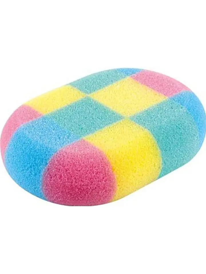 Bath sponge oval in multi-colored squares.
