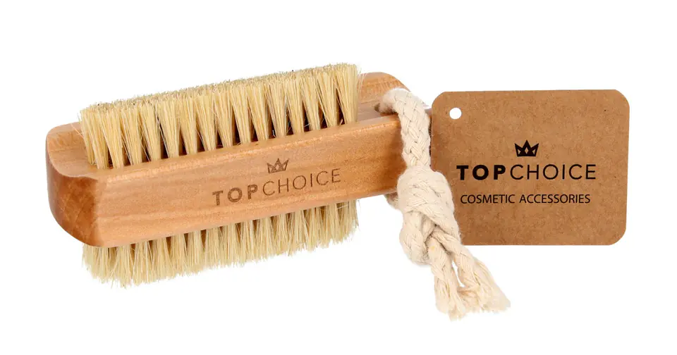 Double-sided brush for cleaning hands and nails made of wood and bristles from wild boar hair. Thanks to its ergonomic shape in the form of a rectangle, it adapts perfectly to the shape of the hand.