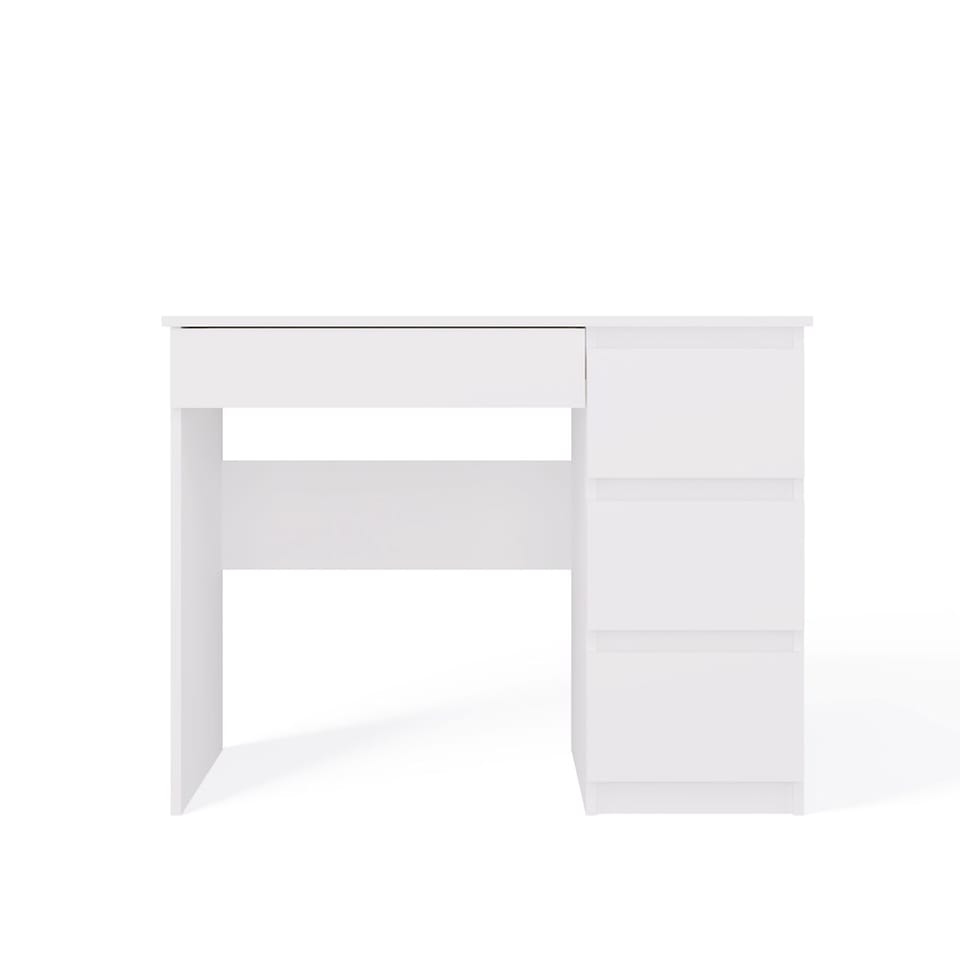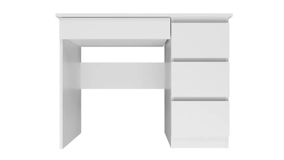 | Additional information: | Edges - finished with ABS plastic (characterized by high mechanical and chemical resistance), The photos of the sets show an example arrangement with other furniture from the collection. The remaining models are available for sale separately., Laminated chipboard is resistant to mechanical stress and extreme temperatures, Clean the furniture surface with a soft cloth. Avoid using harsh chemicals, Smooth sides without plugs and visible holes, Desk with drawers on the right (also available with drawers on the left) , Self-assembly furniture |