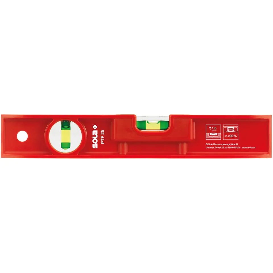 Material: ABS plastic, profile shape resistant to deformation. Break-resistant libella blocks made of acrylic glass with a magnifying lens (20%). Improved twilight readability thanks to an optimized glowing coating. Accuracy of measurement in normal position 1 mm/m.