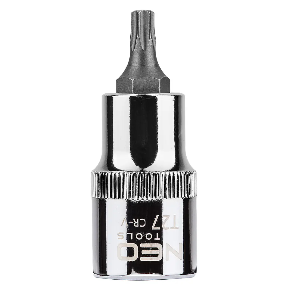 Torx tip on 1/2" socket, T27 x 55 mm, CrV steel socket, S2 steel tip, TÜV M+T certified, 25 years warranty