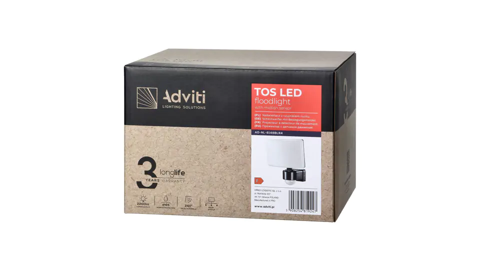 TOS LED 30W garden floodlight with PIR, 2200lm, IP65, 4000K, PC, black,AD-NL-6148BLR4