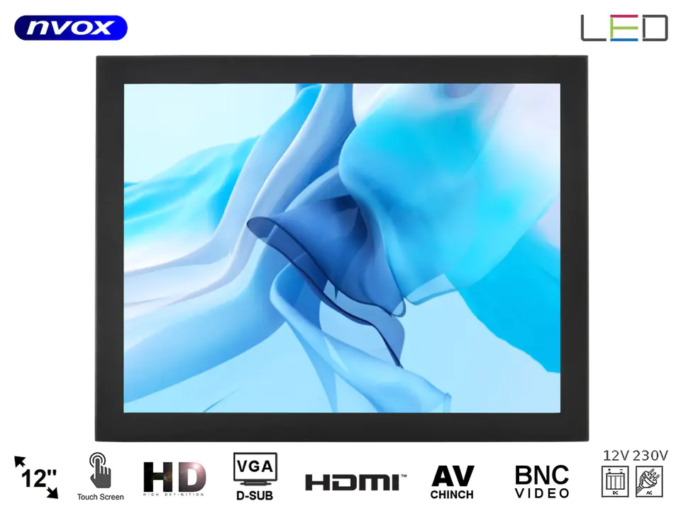- branded Digital LED Hi-Contrast matrix with increased brightness, contrast and sharpness - increased readability of the screen in the sun - advanced high-permeable color filter - special frame allows you to freely build the monitor - solid metal housing - touch screen - VGA input - HDMI input - ideal for use in: interactive kiosk, slot machine, POS, advertising stand, intelligent information point, etc. • 12inch LED digital display, TFT matrix 4: 3 (Active Matrix System)• TFT matrix 4:3 (Active Matrix System)• brightness 500:1, contrast 1000:1• resolution 1024 x 768px• HDMI mode: 480i, 480p, 720p, 1080i, 1080p• functional simple MENU• USB input - for touch control connection• VGA input• HDMI input• systems: PAL/NTSC• power consumption • power supply: DC 12V / AC 230V• black• weight: approx. 1.5 kg• dimensions with frame: W 307mm x H 217mm x Gr. 40mm• Enclosure dimensions: width 279mm x height 217mm x thickness 40mmin the set: - monitor, - remote control, - VGA cable, - HDMI cable, - board with drivers, - 230V power supply, - instr. Handling