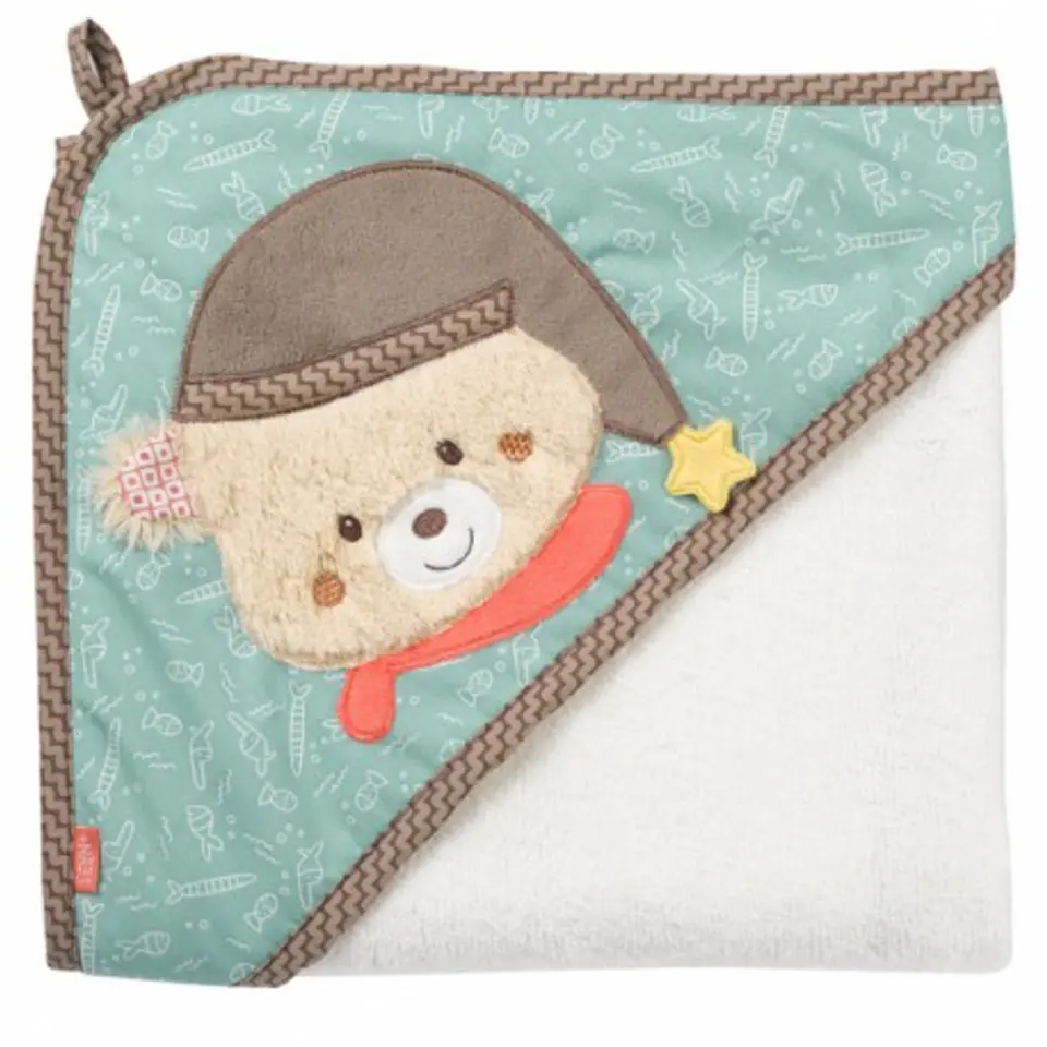 Towel with Hood, Bruno the Bear, from the Collection: Bruno You will be surprised by his gentle touch. It is made of the highest quality terry material, which makes the child wrapped in it feel great pleasure. Thanks to the funny, decorated with Bruno Bear head, the hood you can perfectly protect your baby after bathing. Every child will feel safe, warm and cozy in it. Packed in a practical, transparent, decorative bag, it can be your first birthday gift. A neat hood perfectly protects the head. Made of the highest quality material. Velvety to the touch, does not irritate the skin. Indispensable in the daily care of the baby after bathing. Perfect for a gift, thanks to the attractive appearance and packaging. Dimensions: 80 x 80 cm. All toys of the German brand FEHN are safe for children from 0 years. They are made of the best quality materials. They meet EN71, CE standards, tested in the institutes "Stiftung Warentest"" or "Ökotest". 60324