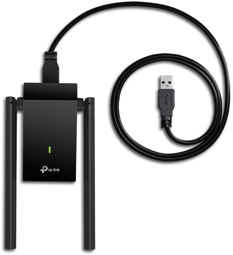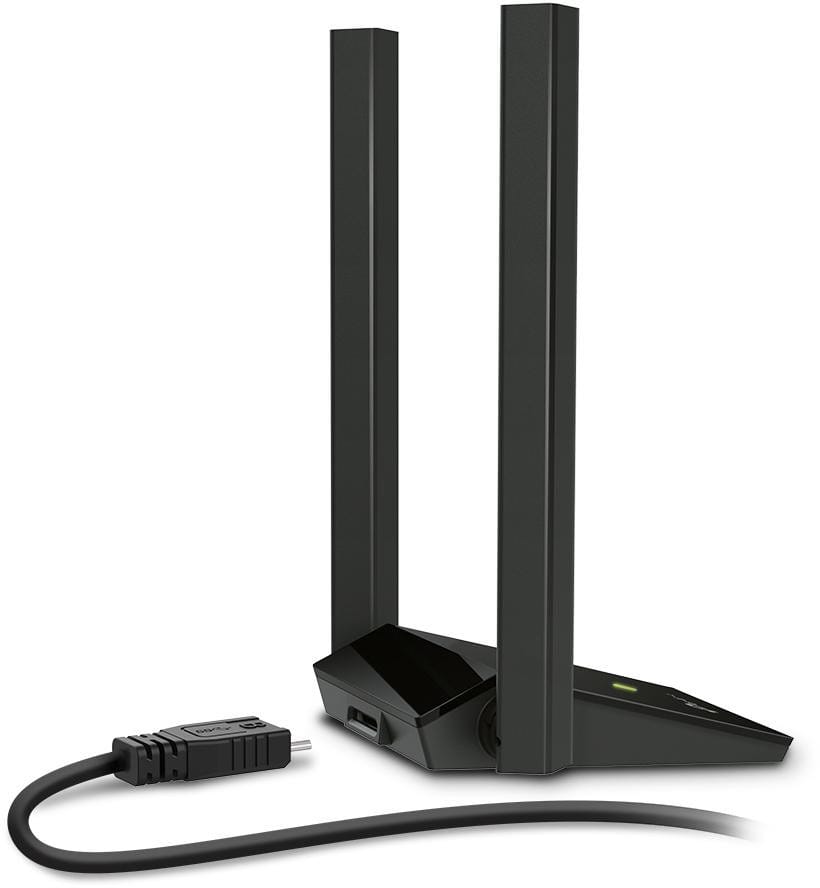 Karta sieciowa USB dużego zasięgu z dwoma antenami, standard AC1300.Wyższe prędkości, lepsze połączeniaArcher T4U Plus odbiera sygnał Wi-Fi w dwóch oddzielnych pasmach, stwarzając przestrzeń do obsługi wszystkich twoich działań. Połącz się z pasmem 2,4 GHz, by mieć do dyspozycji 400 Mb/s do przeglądania stron internetowych, wysyłania maili i spędzania czasu na portalach społecznościowych lub wybierz pasmo 5 GHz o prędkości 867 Mb/s, gdy chcesz pograć online, obejrzeć film w dobrej jakości lub pobrać duże pliki.Dwie mocne anteny dla większego zasięguWykorzystanie dwóch mocnych anten o zysku 5 dBi sprawia, że Archer T4U Plus w odczuwalny sposób zwiększa prędkość i zasięg transmisji danych, ułatwia odbiór sygnału i zapewnia stabilne połączenia Wi-Fi na każdym piętrze i w każdym pomieszczeniu Twojego domu. Nie musisz martwić się o opóźnienia, bo sieć działa szybko i stabilnie.Większa prędkość transferu z USB 3.0Port USB 3.0 jest zgodny z protokołem 802.11ac sieci bezprzewodowej, z którego czerpie prędkości transferu, zapewniając tym samym dostęp do szybkich połączeń. Podłączając urządzenie do portu USB 3.0 zyskujesz dostęp do sieci, która jest wydajna i stabilna.Regulowane anteny wielokierunkoweKonstrukcja anten umożliwia pełne dostosowanie ich kierunku do warunków otoczenia, aby zmaksymalizować wydajność i komfort korzystania z sieci.Wygoda użytkowania i łatwość doboru lokalizacjiKonstrukcja umożliwiająca stawianie urządzenia na blacie oraz dołączony do zestawu kabel USB o długości 1 m sprawiają, że znalezienie dogodnego położenia, zapewniającego optymalny zasięg sieci, nie stanowi problemu.