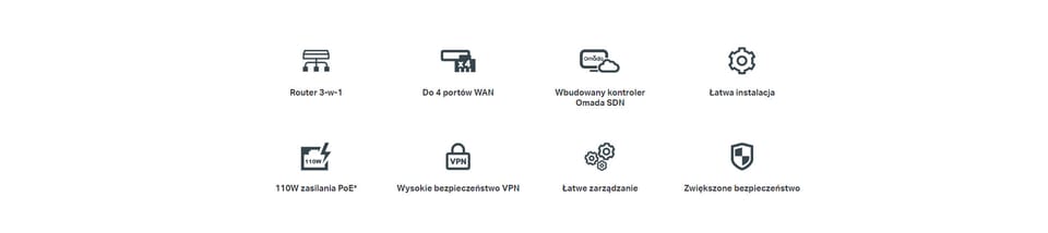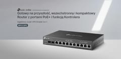 - 3-in-1 router: The device combines the functions of a router, PoE switch and Omada controller.
