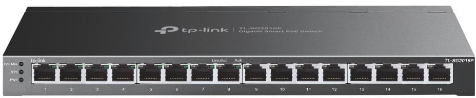 TL-SG2016P Smart JetStream Gigabit Switch, 16 Gigabit Ports Including 8 PoE+ Ports