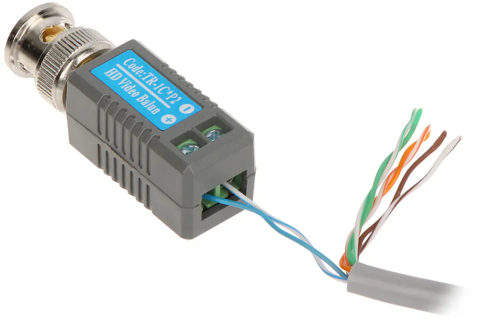TR-1C*P2 is designed for video signal transmission via twisted-pair cableThe device matches the impedance of 75Ω coaxial cable to the impedance of a symmetrical cable, providing video signal transmission up to 400m (category 5 twisted pair cable) and eliminates unbalanced interference