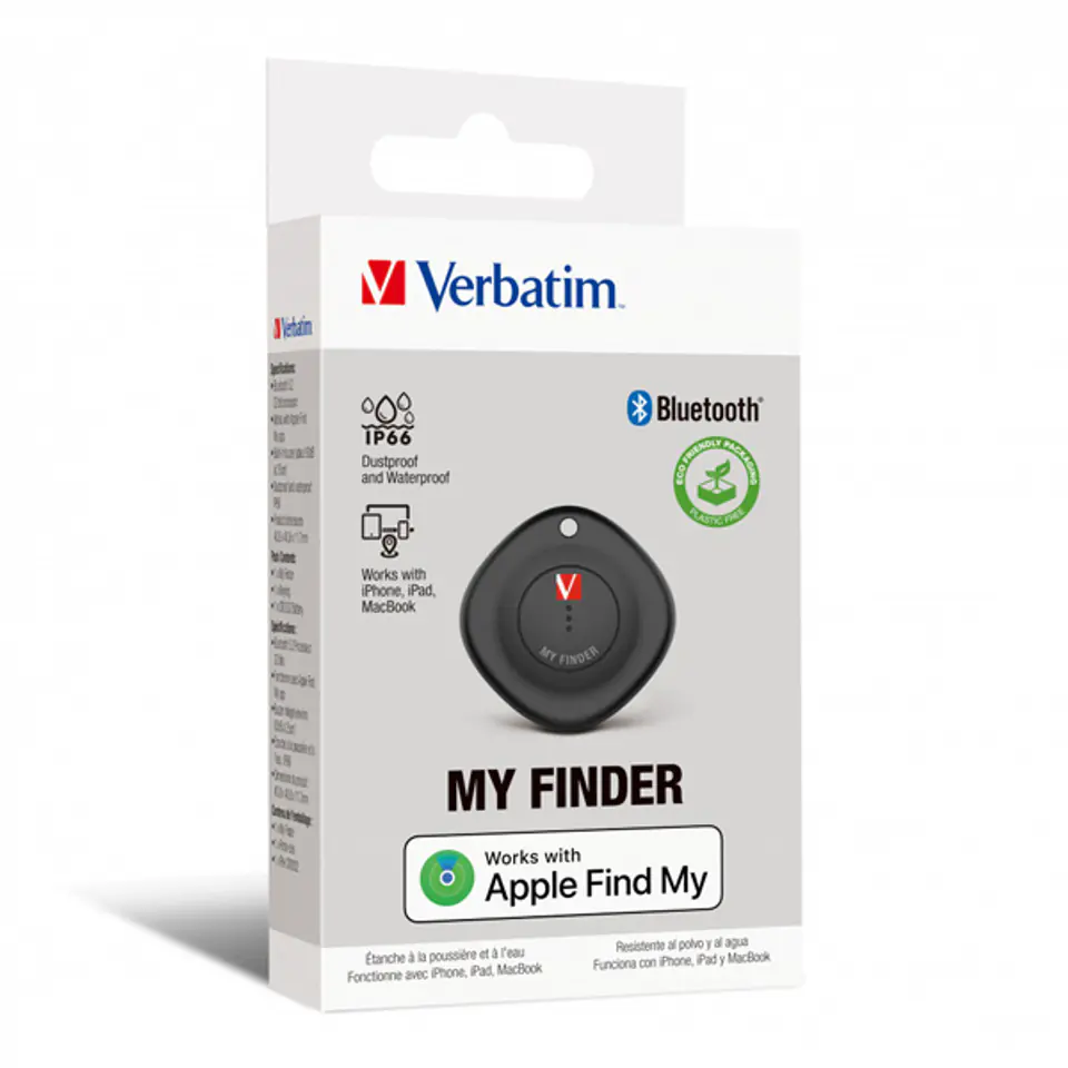 Verbatims My Finder is a tracking device that works exclusively with Apples Find My App. Simply attach the My Finder to any item that you need to keep track of and you can locate the item through the Find My App on your iPhone, iPad and MacBook.Misplaced keys, bags and other valuables are a thing of the past with Verbatims My Finder Bluetooth tracker. Simply attach the versatile tag to the item you want to track and use Apple Find My app to locate it when missing.Within the apps Lost Mode, you can enter your contact details in the event that your missing item is located by someone else in the Apple Find My network.