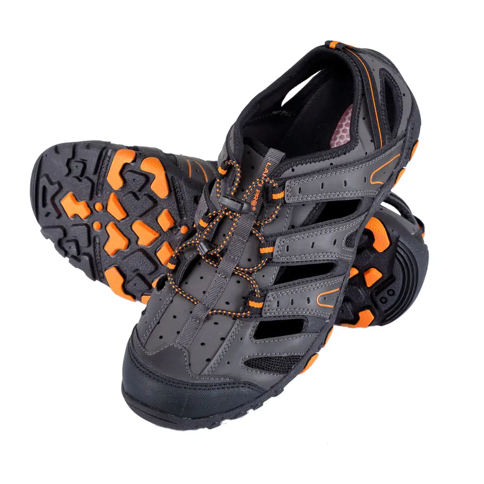TREKKING SANDALS, PU/MESH, GREY-BLACK-ORANGE, "44", LAHTI