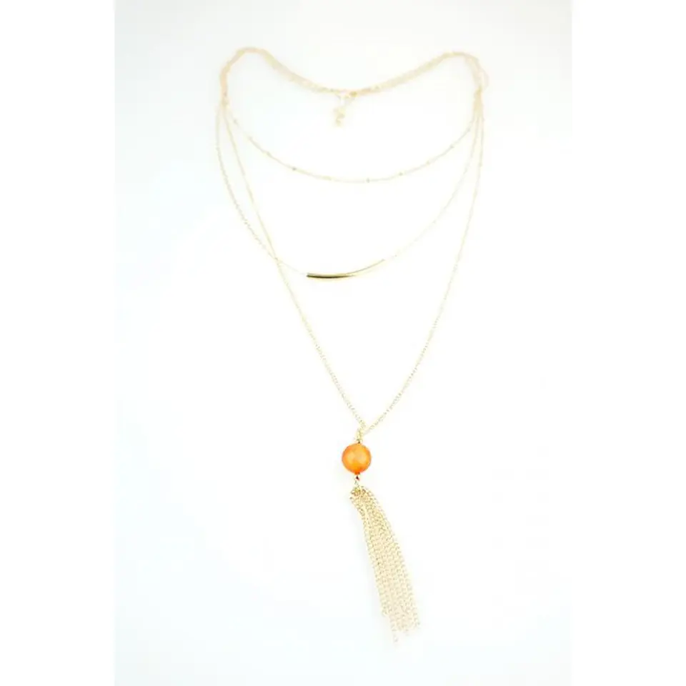 TRIPLE LONG NECKLACE WITH ORANGE BEAD