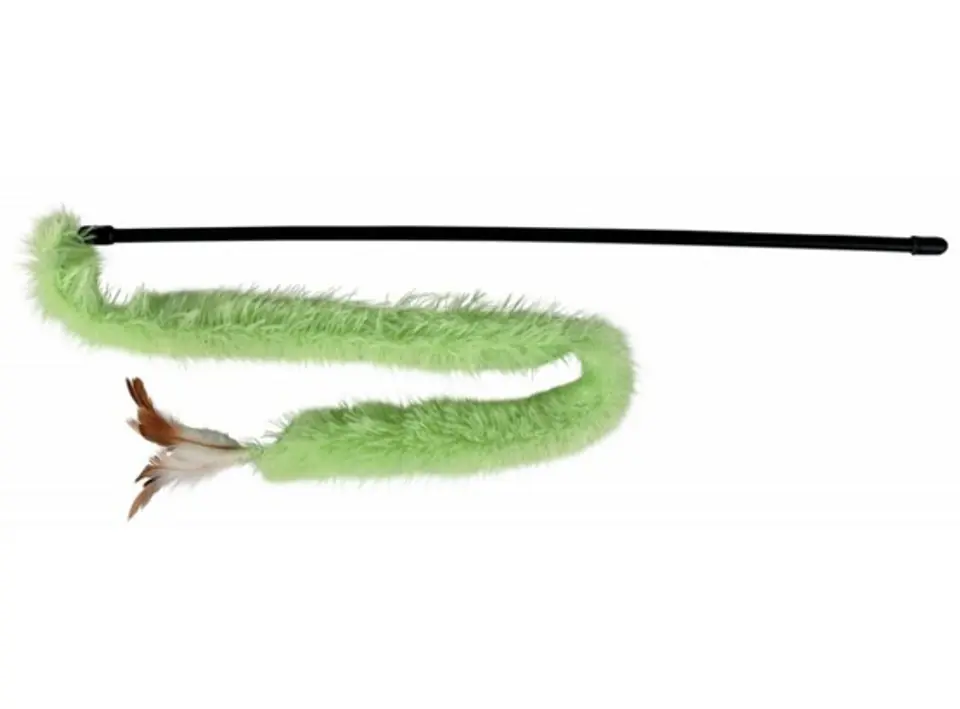 The rod ends with a plush tail, at the end of which feathers are placed - further increasing its attractiveness. Made of non-toxic plastic.