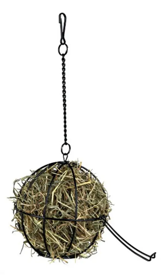 After filling the ball with food, it must be hung in a cage. In this way, the animal is motivated to be active in order to get food.
