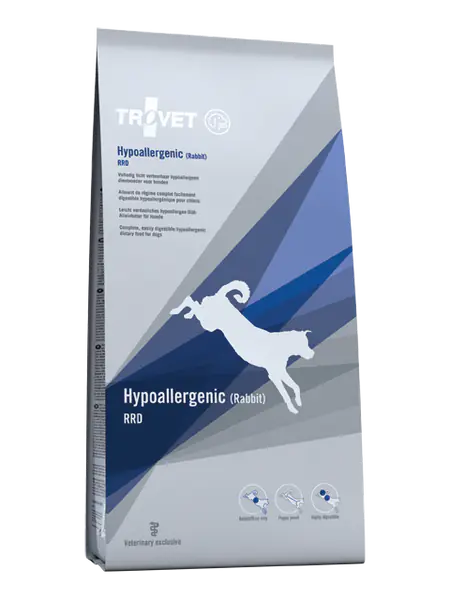The recommended duration of use of hypoallergenic TROVET RRD food (with rabbit meat) is 3-8 weeks - after this time, after the symptoms of intolerance / food hypersensitivity have disappeared, you can still give the dog RRD food as a full-fledged food