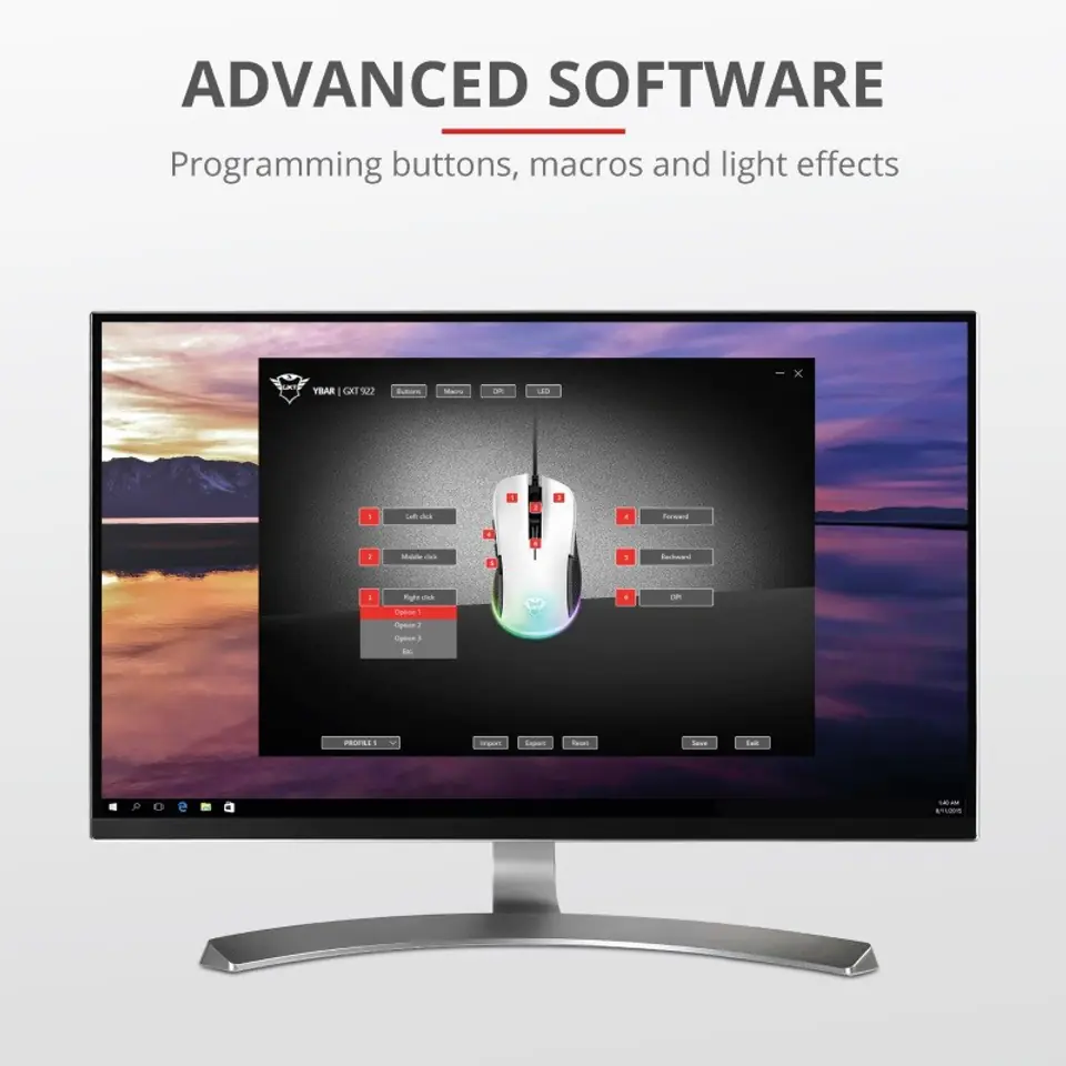 Trust GXT 922W YBAR mouse Right-hand USB Type-A Optical 7200 DPI