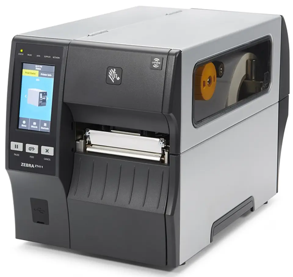TT Printer ZT411; 4", 203 dpi, Euro and UK cord, Serial, USB, 10/100 Ethernet, Bluetooth 4.1/MFi, USB Host, Peel w/ Liner Take-Up, EZPL