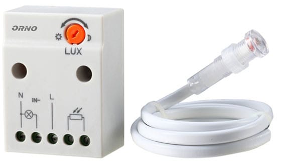 The device is used to automatically control lighting or other electrical consumers while saving electricity. Its task is to switch on and disconnect the electrical circuit when the light intensity drops below the set level. Potentiometer for adjusting the light intensity. External probe equipped with a cable with a length of approx. 1 m (2 × 0.5 mm?).