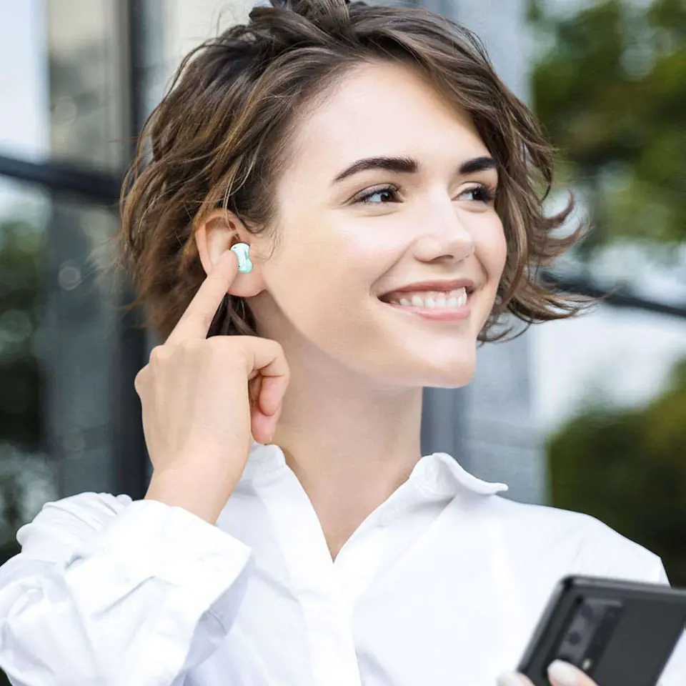 The use of the latest technology allows you to dual the left and right earphone connection, providing a smoother wireless connection. The construction of the headphones allows you to achieve a clear sound with strong bass and very good denoise.
