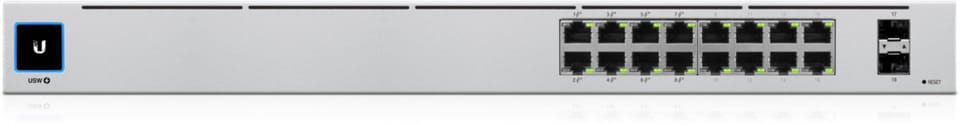 The USW-16-POE is a configurable Gigabit Layer 2 switch with sixteen Gigabit Ethernet ports, including eight PoE + ports with 802.3at auto-detection and two SFP ports. Provides Gigabit PoE links to RJ45 Ethernet devices and Gigabit Fiber link options to enterprise networks.