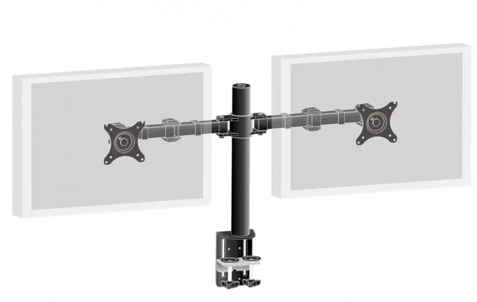 Simple and functional arm for two screens. IIYAMA DS1002C-B1 is a mounting arm attached to the tabletop (side mount) to two screens diagonally up to 30 ". The arm allows you to save space on your desk, and the cable management system makes it easy to keep things organized. The wide range of adjustment possibilities, including vertical and horizontal inclination, height adjustment and rotation, allow you to comfortably position the screen to your preference and maintain an ergonomic, healthy posture for your body posture.