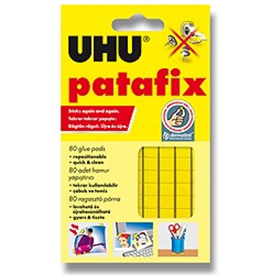 Patafix UHU tac adhesive is a smart alternative to foams, tape and nails. UHU Patafix is an adhesive for clean, multiple joining of small objects with virtually all surfaces such as wall, furniture and windows. Do not use on freshly painted walls and wallpaper.