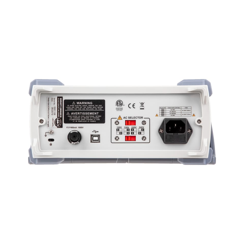MEASURING RANGEDC voltage: 200 mV/2 V/20 V/200 V/1000 V ? (0,1%+3) AC voltage: 2 V/20 V/200 V/750 V ? (0,5%+20) DC current: 200 ? A/2 mA/20 mA/200 mA/20 A ? (0,5%+20) AC: 2 mA/20 mA/200 mA/20 A ? (0,8%+40) Resistance: 200 Ohm/2 kOhm/20 kOhm/200 kOhm/2 MOhm/200 MOhm ? (0,5%+10) Capacity: 20 nF/200 nF/2 ? F/20 ? F/200 ? F/2 mF/20 mF/100 mF ? (1,5%+10) Frequency: 200 Hz~10 MHz ? (1%+5) Fill Factor: 5%~99%Diode TestVery Circuit ContinuityCheck TransistorsCheck Thyristor CheckADDITIONAL FUNCTIONSMANUPPLY Change of Measurement Ranges Record MAX/MIN ValuesFreeze Measurement ModeRetimadiance ModeRaisal brightnessLow battery indicatorMaximum Reading: 20000CECHOS GENERAL USBPortPower: 100 V/120 V/220 V/240 V ?10%, 47 Hz~63 Hz Display: EBTN LCDSeconding device dimensions: 265 x 110 x 320 mmProduct weight: 3.07 kgAccessories: Network cable, USB cable, test leads, short cables with crocodile clips, multifunction socket