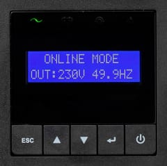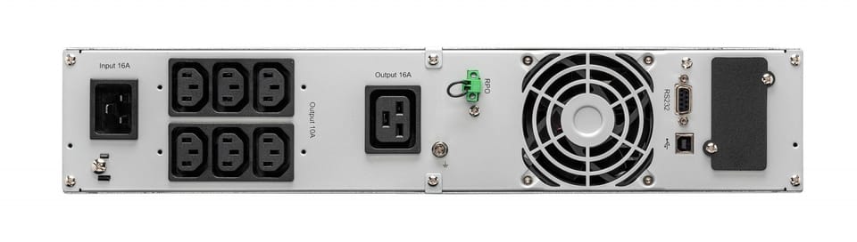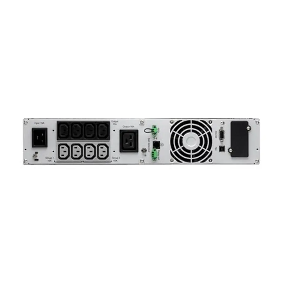 UPS with double conversion online, 2U Rackmount, 3000 VA / 2700 W, multilingual LCD display, energy meter, 6 IEC 10 A + IEC 16 A (2 manageable groups), slot for optional management board, USB and serial ports, contacts potential free, RPO connector, power management software compatible with the virtual environment, batteries replaceable during operation, long emergency operation time with four optional EBM modules, all accessories for mounting in a rack in the set.