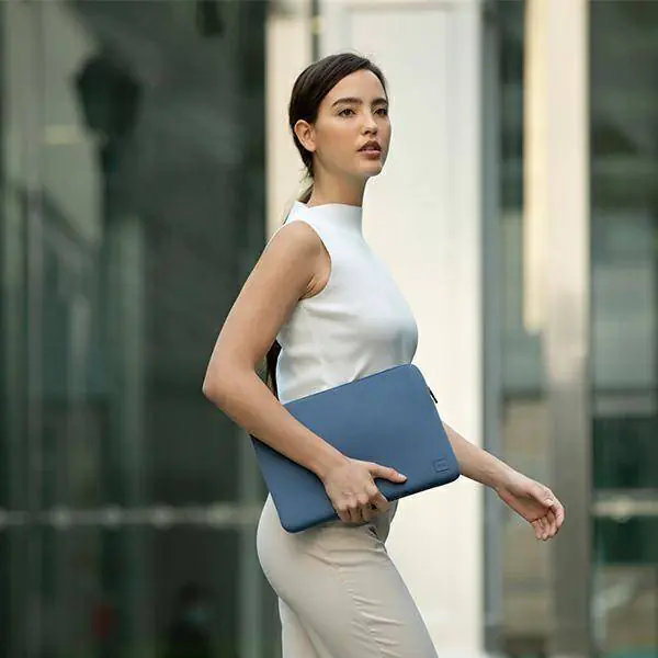 Reinforced seams provide protection and security for keeping the laptop in place. The bag is lined from the inside with a smooth plush interior that cushions it against bumps and abrasions.