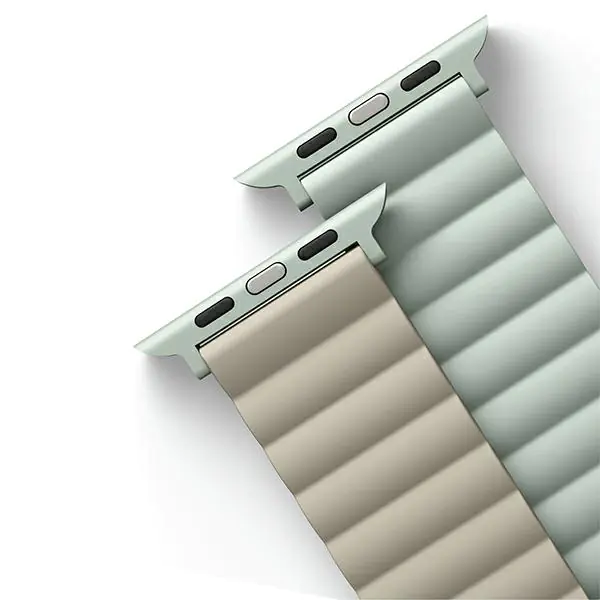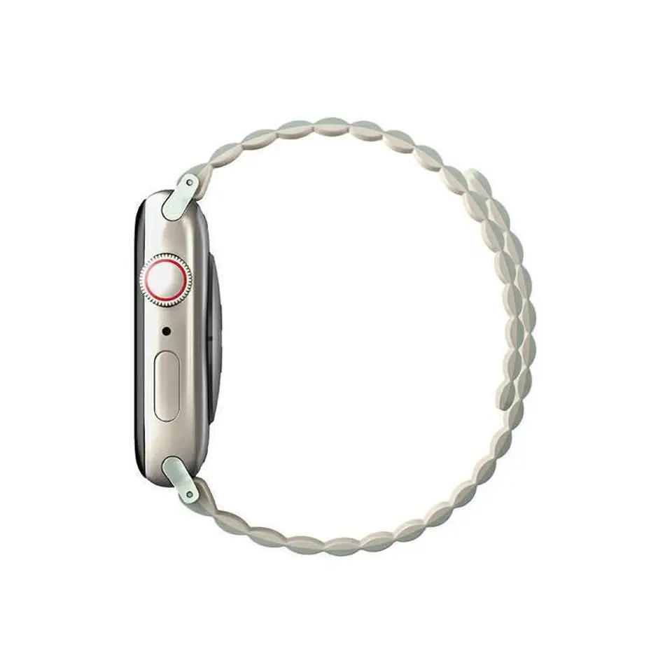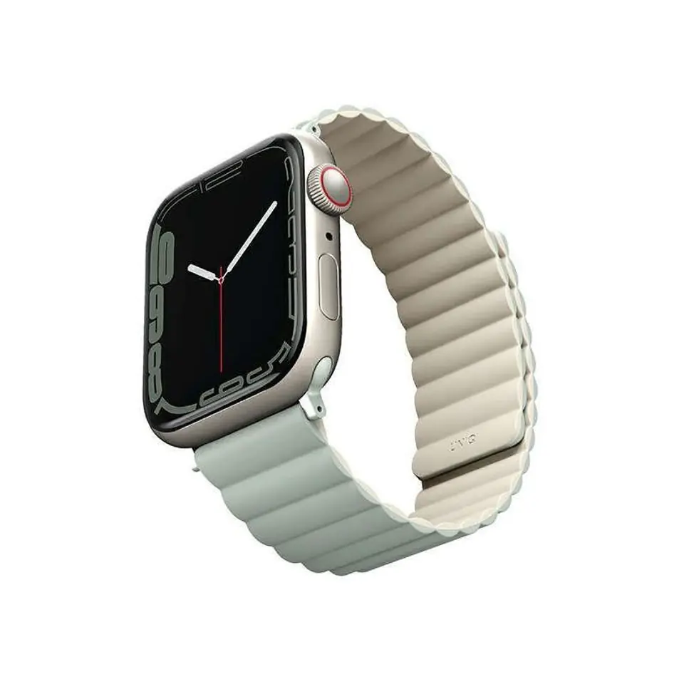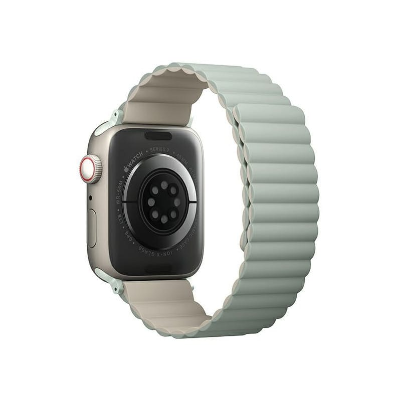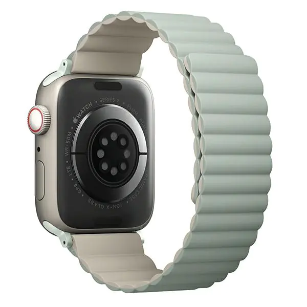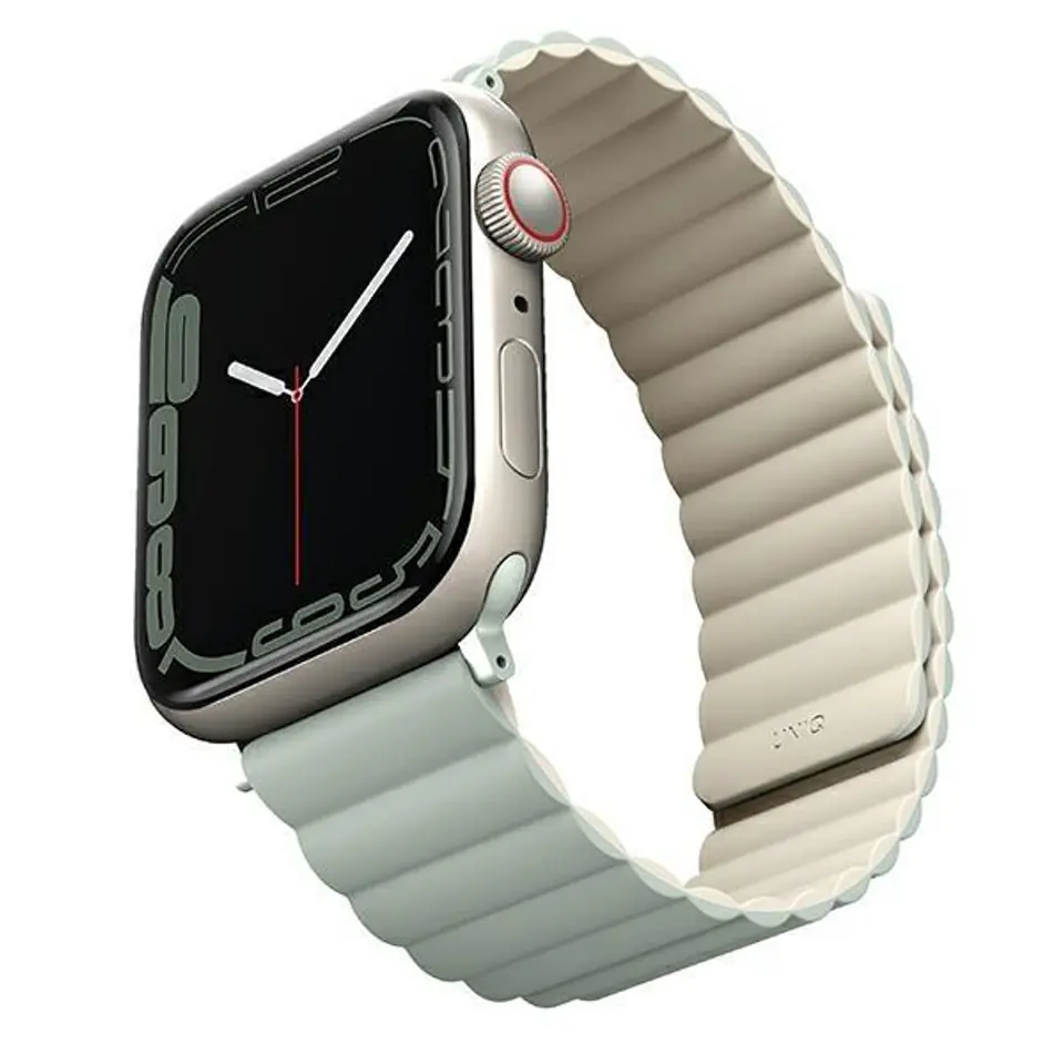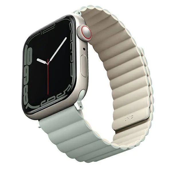 Uniq Revix - is a two-color magnetic stripe for Apple Watch. Two-tone reversible design with patented connectors provides 3 ways to wear, easily change colors in one go. The innovative, strong and comfortable magnetic mount is tested for tensile strength up to 1.2 kg and allows easy length adjustment for a perfect fit. The strap is made of waterproof, washable and comfortable to wear, smooth silicone. Play with colors and create your own unique set of colors.