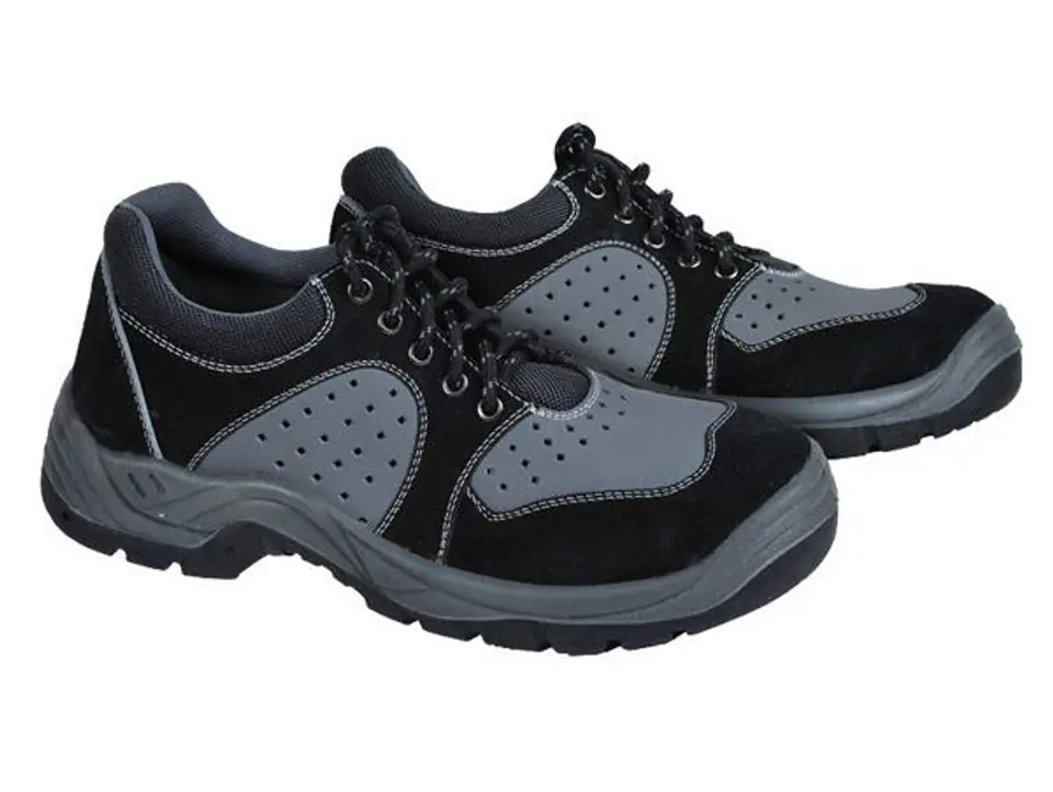 UNIREIS safety shoes - made of cowhide, in front of the ankle with holes that increase the breathability of footwear - velor in black combined with gray nubuck leather - sole made of double polyurethane, oil-resistant, non-slip, shock absorption under the heel - steel toe resistant to impacts with an energy of 200 J and bends up to 15 kN - type SB, meet the requirements of EN 345-1