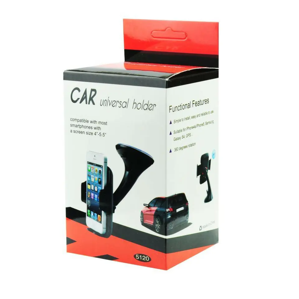 Universal car holder, glued with a suction cup to the glass.