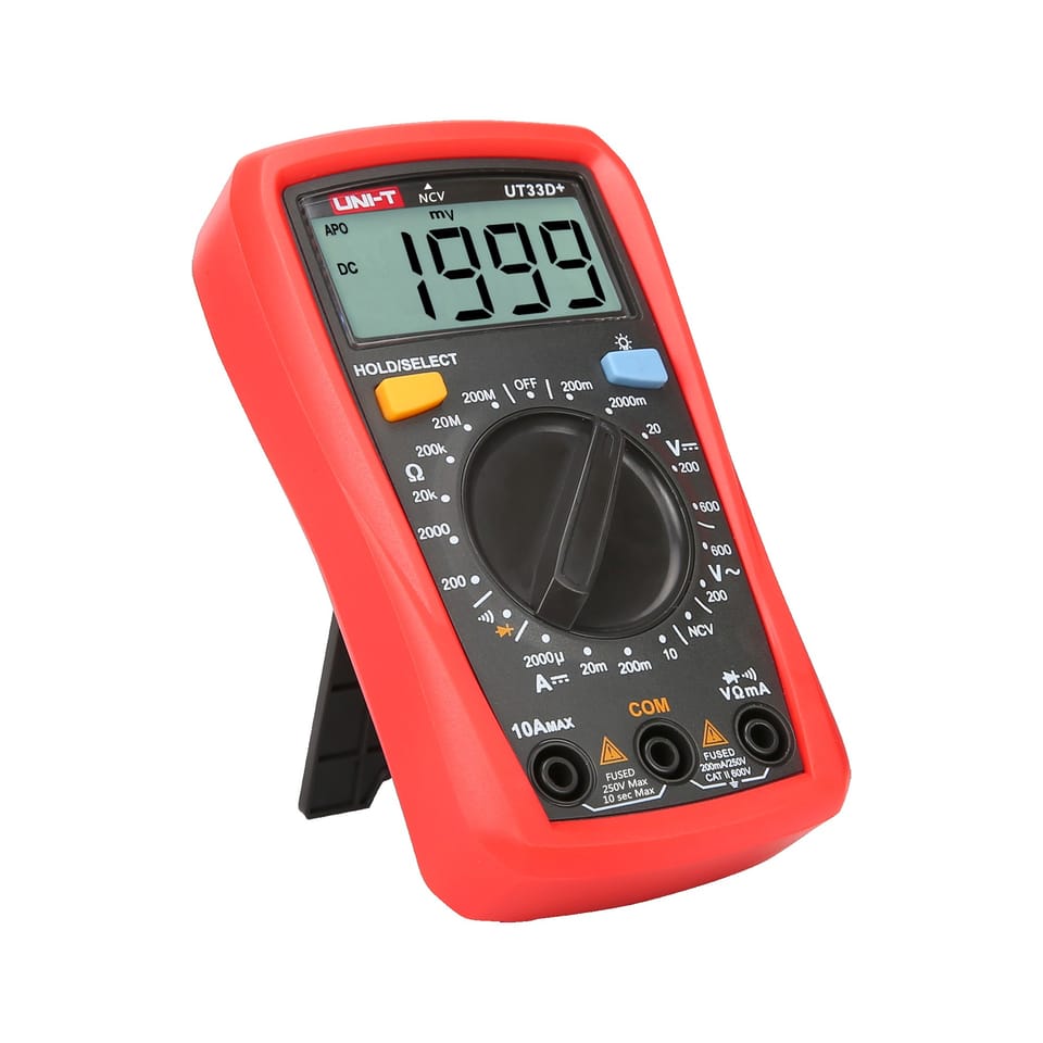 MEASURING RANGEDC voltage: 200 mV / 2000 mV / 20 V / 200 V / 600 V ? (0,5%+2) AC voltage: 200 V / 600 V ? (1,2%+3) DC current: 2000 ? A / 20 mA / 200 mA / 10 A ? (1%+2) Resistance: 200 Ohm / 2000 Ohm / 20 kOhm / 200 kOhm / 20 MOhm / 200 MOhm ? (0,8%+2) Diode testVeraging continuity of the circuit ADDITIONAL FUNCTIONSManufactured change of measuring ranges Electric field detection function Freezing the last indicationLower battery indicatorMaximum reading: 2000Exposed LCD screenGENERAL specificationsDIRECT voltage input impedance: about 10 MOhmPower: battery 2x 1.5 V (R03) battery Display size: 48 x 16 mm Product dimensions: 134 x 77 x 47 mmProduct weight: 206 gAccessories: Batteries, test leads, holster