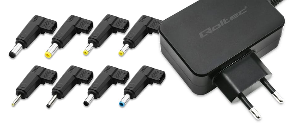 Energy that Follows YouUniversal laptop charger is the ideal solution for those who value mobility and convenience. Equipped with a set of 8 plugs that fit various laptop brands, it ensures reliability and flexibility in any situation. Whether you work remotely, travel for business, or simply like to have everything under control, the Qoltec charger provides you with the energy you need, wherever you are. Choose reliability and freedom with our universal charger!Matching a Power Supply Lending a Helping HandTo avoid downtime and maximise the life of your device, pay attention to four key parameters: power, voltage, amperage and plug.- Power (W): The power supply should be at least as powerful as the original, and a higher value means less heating and greater efficiency.- Current (A): It can be equal to or higher than required, giving more freedom of choice.- Voltage (V): This is the only parameter that must be matched almost perfectly. The permissible deviation is only +/- 0.5V.- Plug: A key element! It must be identical to the original to ensure a correct connection.The basic data can be found on the label of the laptop (INPUT) or the nameplate of the power supply unit (OUTPUT). An efficient choice guarantees operational reliability, dependability and time savings. Make an informed choice to enjoy the full power of your equipment!Your Choice MattersWith this power adapter, you no longer have to worry about the variety of ports on your devices. Its compact size and lightweight design make it the perfect travel accessory. The power supply fits easily into your laptop bag without taking up much space. The MultiPlug automatically adjusts the voltage, eliminating the need for manual parameter setting. Our solution offers:- 8 interchangeable plugs that allow compatibility with laptops from many brands,- reliability of laptop operation ensuring stable and uninterrupted power supply,- safety minimizing the risk of laptop overheating or battery damage,- efficiency providing the right power for effective laptop operation,- battery longevity ensuring proper charging and discharging cycles that translate to optimal battery life.Safe Power in a Universal DesignThe manufacture with the highest quality materials makes the Qoltec power supply a worthwhile item for you. Thanks to an intelligent power management system, the power supply not only charges efficiently, but also minimises standby power consumption. It will provide the expected stability work thanks to special safety features:- Protection against surges: protects against under- or over-voltage.- Protection against overloads: protects against overloading the supply line.- Protection against short circuits: prevents short circuits in the supply circuit.- Protection thermal: protects against damage resulting from overheating.Invest in safety it never loses its value.