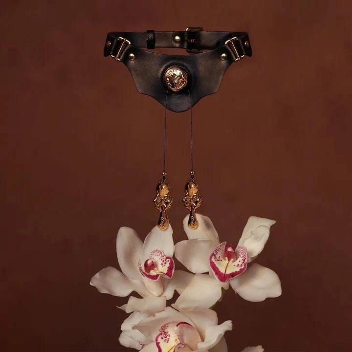 Introducing the UPKO Mystic Bond Collection Collar With Pulling Nipple Clamps, an innovative product that harmoniously combines elegance with functionality in the worlds of pleasure and control. This unique collar has been designed using the BOA® Fit system, which ensures a smooth and easy fit with a single movement. With the twist of a button, the steel cords associated with the nipple clamps become taut, offering intense stimulation sensations. The standout feature of this product is its fine-tuning capability, giving the wearer complete control over their experience. To release the tension, simply pull the button up gently and return it to its original position. The use of high quality Italian cowhide not only provides a luxurious look, but also a high level of durability, making this product ideal for long sessions of pleasure. The inclusion of adjustable nipple clamps, which can be easily adjusted thanks to the dial, increases intimacy and allows you to explore the boundaries in sensation. The silicone coating on the clamp head further enhances pleasure by offering a firmer grip on sensitive areas of the body. The collar is adjustable from 37 to 43 cm and the cord length is 28 cm for versatility of use. The distinctive gold hardware in electroplated zinc alloy emphasises the elegance and high quality of the design. The product makes it an ideal choice for those wishing to enhance their erotic experience in a subtle and sophisticated way.