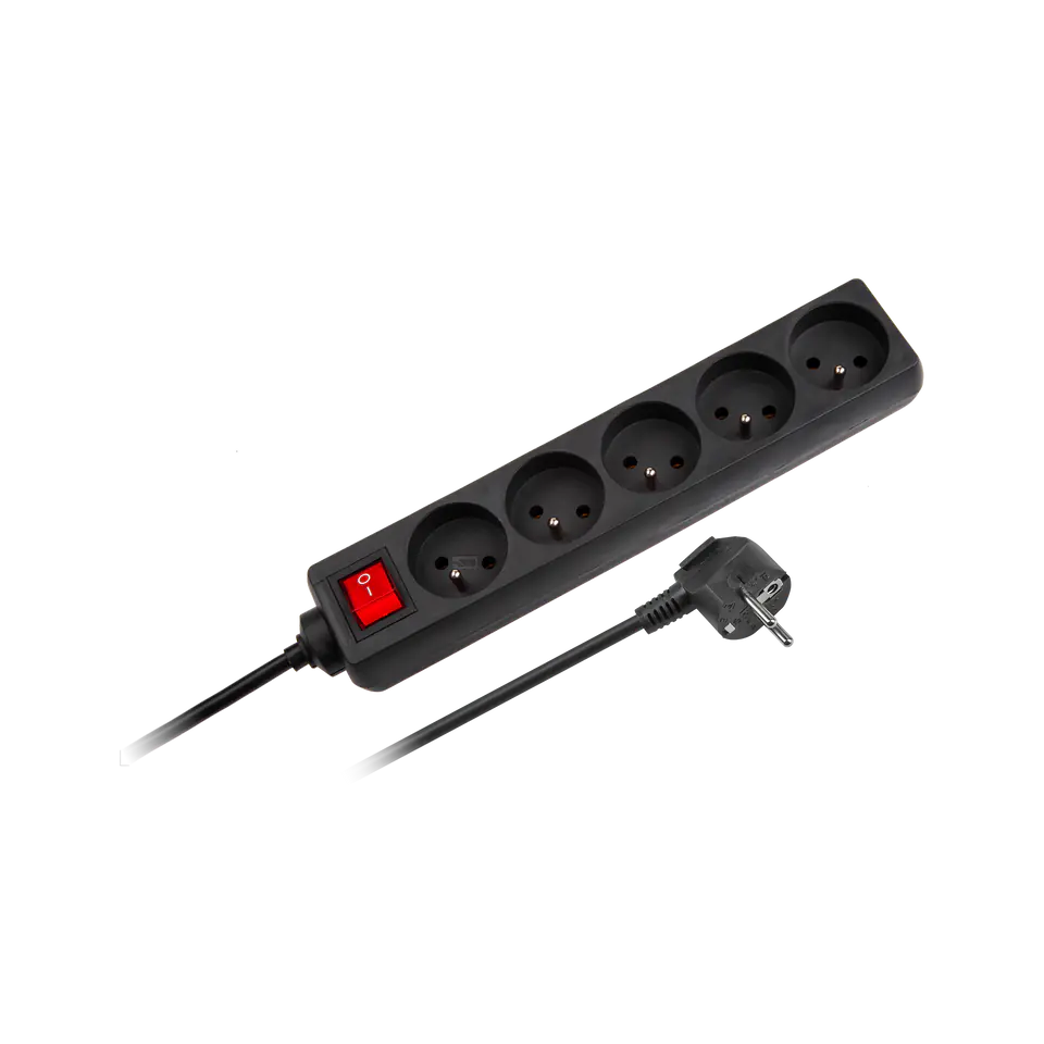 URZ3061-5 B Mains extension cable black 5 sockets with switch cable 5m