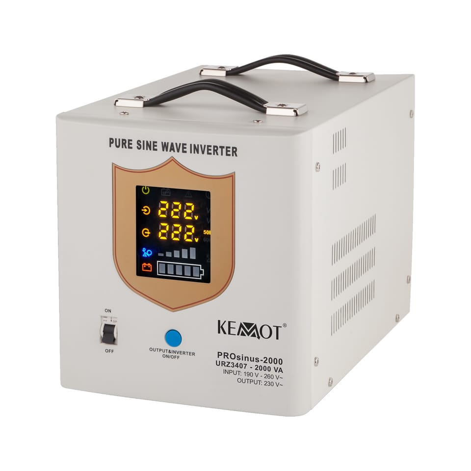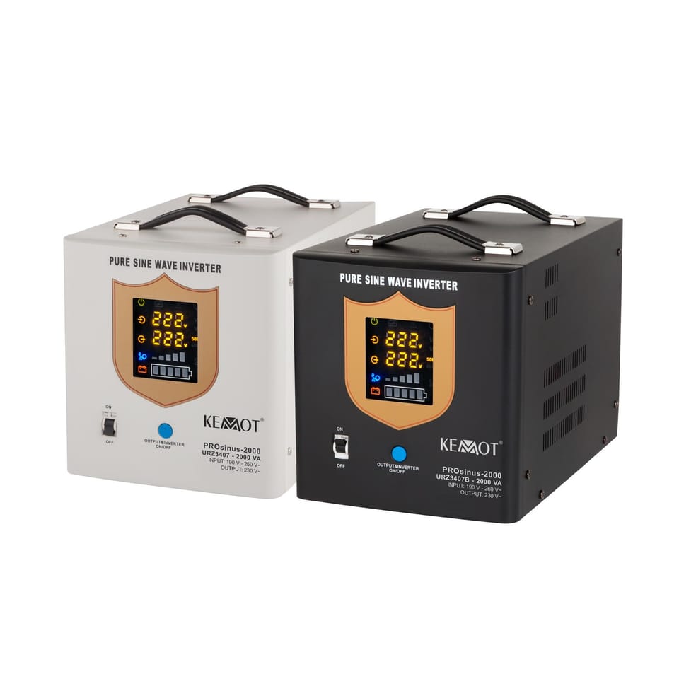 The KEMOT PROsinus series of devices is perfect for powering e.g. central heating pumps or pumps in fireplace installations, as well as induction motors, or e.g. installation automation devices using heat convectors and any devices extremely sensitive to the slightest changes in the shape of voltage. Their advantage is a pure sinusoidal course of the output voltage (supplying the receivers), thanks to which the device ensures stable operation, preventing the effect of overheating of induction receivers. Together with the 12V battery, they constitute a complete 230 VAC guaranteed power supply device.