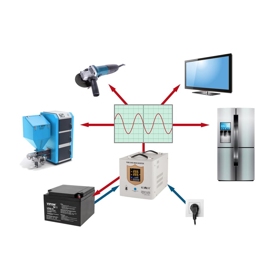 Due to the PURE SINUSOIDAL course of the output voltage (supplying the receivers), the device ensures stable operation of the receivers and no effect of overheating of induction receivers such as pumps or fans. Together with the 12V battery, it is a complete 230 VAC guaranteed power supply device. The unit is equipped with a battery protection system against overload, short circuit, overvoltage, too high or too low voltage and overheating.