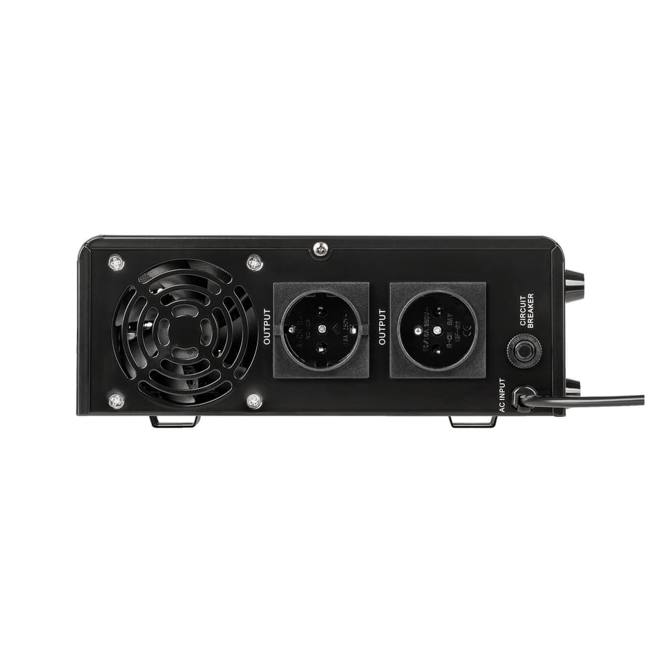 Due to the PURE SINUSOIDAL course of the output voltage (supplying the receivers), the device ensures stable operation of the receivers and no effect of overheating of induction receivers such as pumps or fans. Together with the 12V battery, it is a complete 230 VAC guaranteed power supply device. The unit is equipped with a battery protection system against overload, short circuit, overvoltage, too high or too low voltage and overheating.