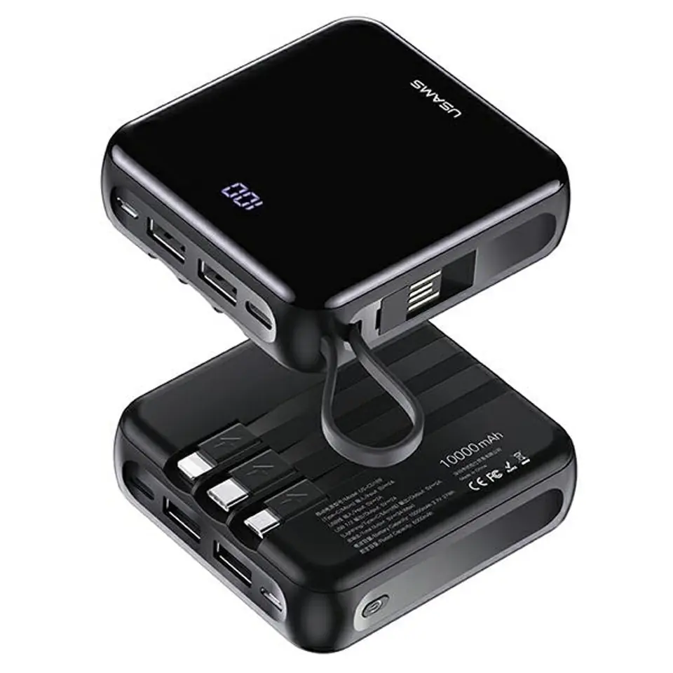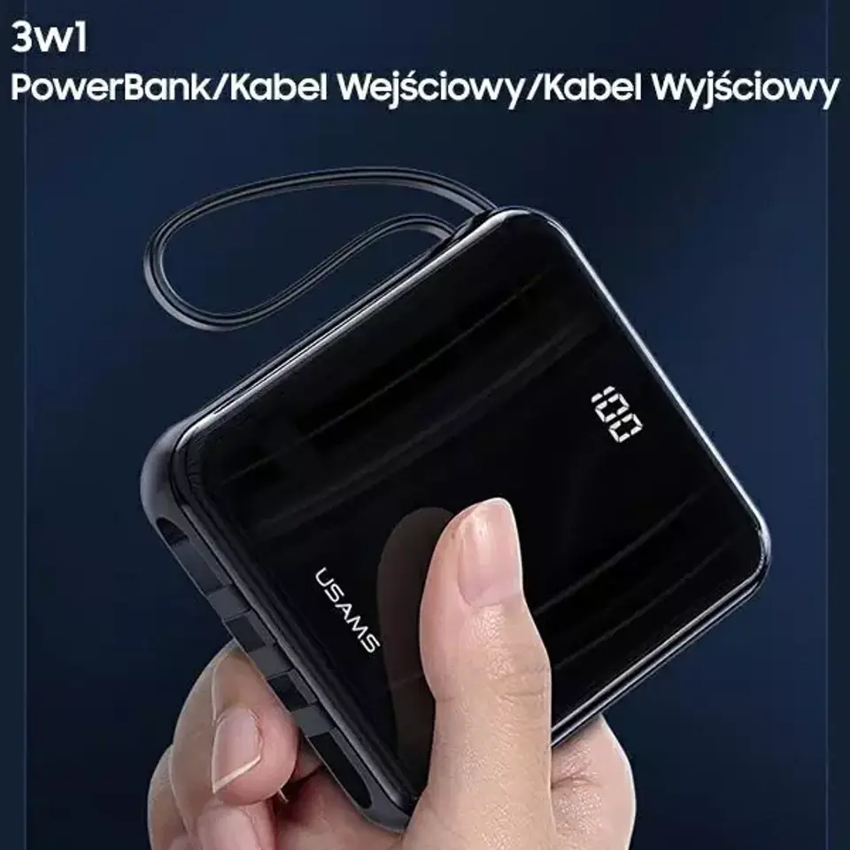 USAMS Mini Powerbank PB61 10000mAh LED + Cables USB-C/Lightning/MicroUSB black/black 10KCD16901 US-CD169