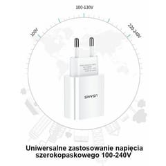 USAMS Order. mow. 1xUSB T18 2,1A only head) white/white Fast Charging CC075TC0