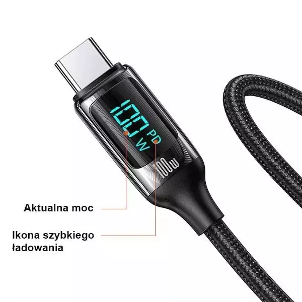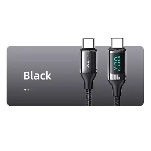 USAMS U78 USB-C to USB-C LED Braided Cable 1.2m 100W Fast Charging Black/Black SJ546USB01 US-SJ546