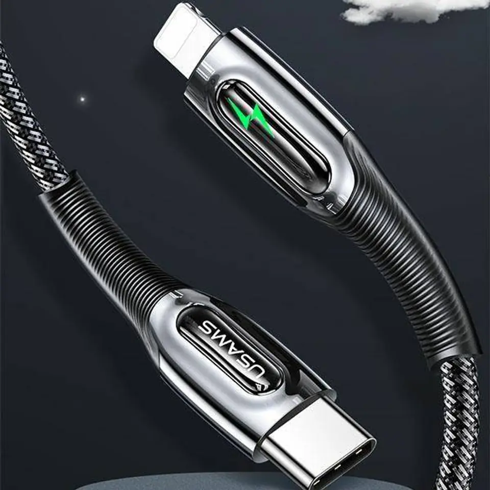 Stylish, braided, intelligent usams US-SJ518 USB-C/Lightning cable is a product that automatically turns off after charging the device to avoid overcharging which increases battery life. It allows for a stable, fast current flow of up to 20W.