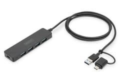 The DIGITUS Slim Line USB 3.0 hub is the perfect solution to expand the possibilities in any workplace. You can connect and use up to four USB devices at the same time. This allows convenient use of multiple control/data entry devices or portable drives. Thanks to USB 3.0 technology, the transmission bandwidth can reach speeds of up to 5 Gbps, ensuring fast data exchange. Thanks to its slim design, this 4-port hub is the perfect travel companion, but also a must-have at home and in the office. The 1.2 m cable allows you to perfectly adjust the length to connect to a laptop or workstation.