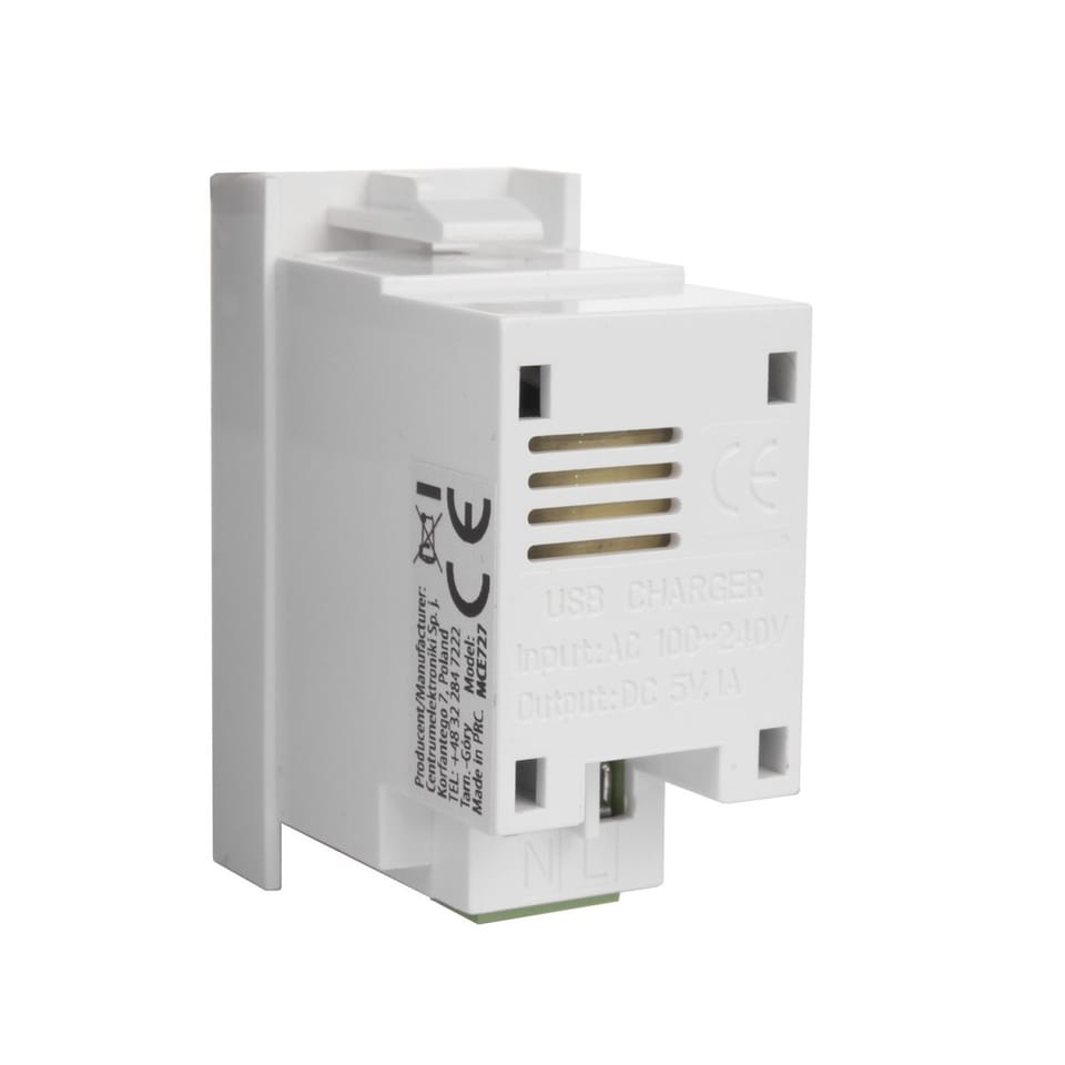 USB socket with Maclean charger, single, 1A, white, MCE727W