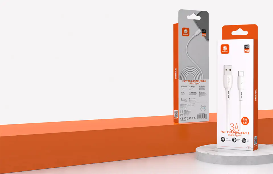 The Vipfan Racing X05 USB to USB-C cable is made of high-quality materials and enables fast charging at a maximum current of 3 A, as well as data transmission speed of 480 MB/s. The USB-C output ensures wide compatibility, and the use of durable PVC material makes the cable pleasant to the touch, and at the same time resistant to bending and mechanical damage.