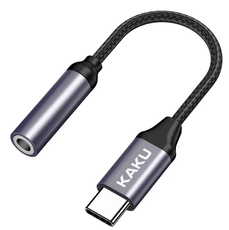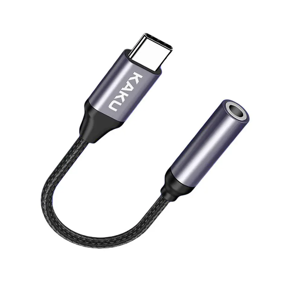 KAKU KSC-428 - adapter with cable from USB-C connector to 3.5 mm headphone jack. It allows you to connect headphones to your smartphone, and thus listen to our favorite music. A practical solution for devices equipped only with a USB-C port.