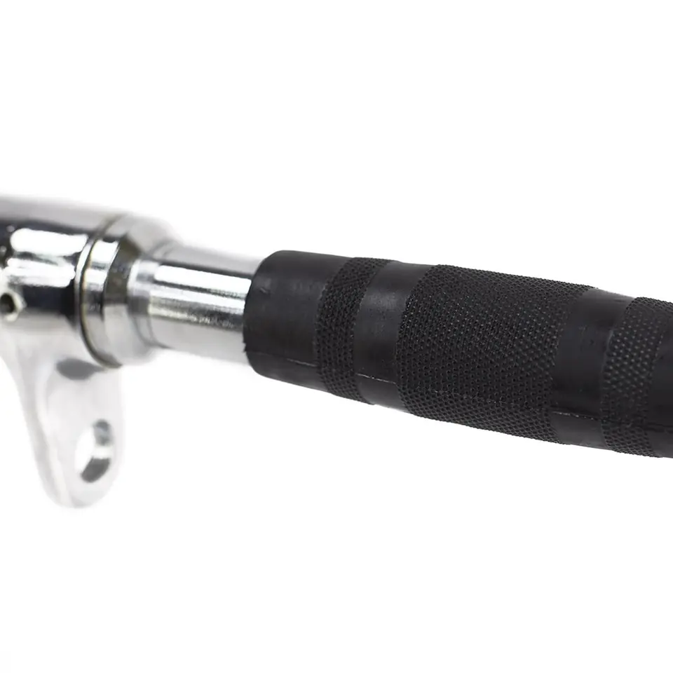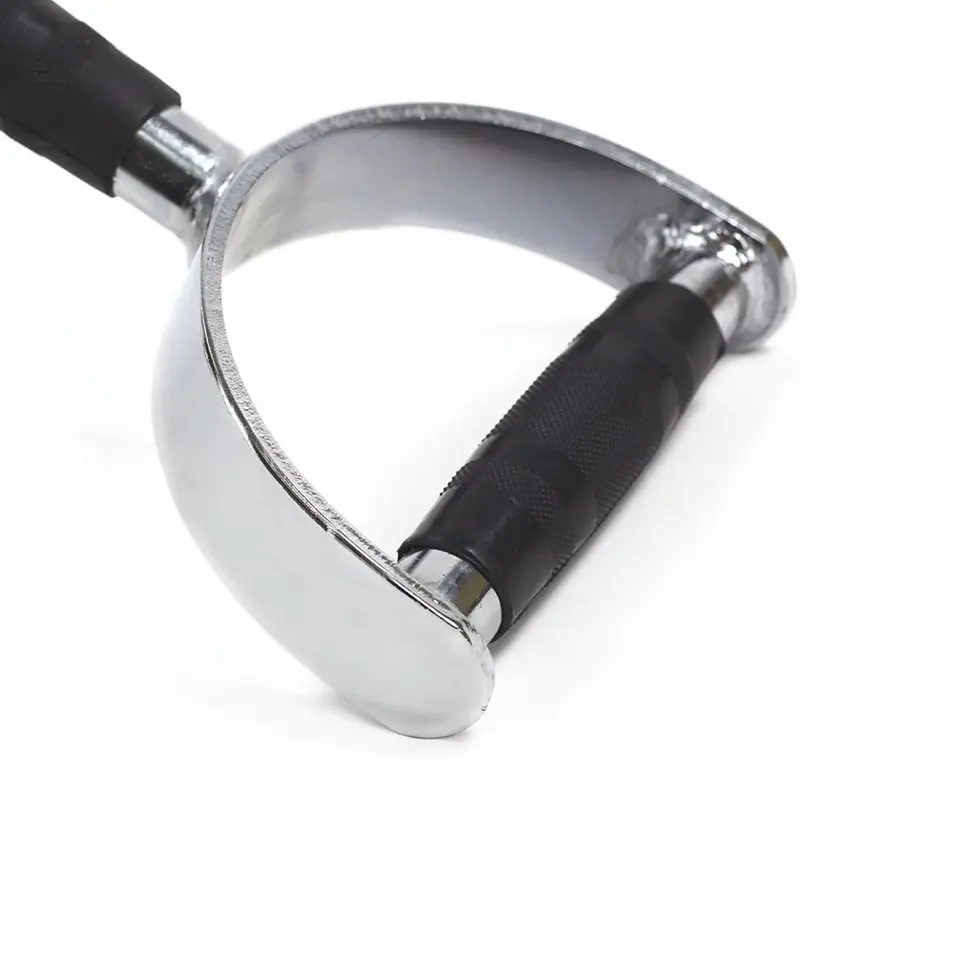 UW15 HMS is a hook neck designed for training on the upper and lower lift. It can be used for a whole range of exercises for different muscle groups of the upper body, starting from small muscle groups, such as biceps and triceps, through the anterior and lateral acton of the deltoid muscles, to the widest muscles of the back and the extensor of the back. It is made of high quality steel, which gives the opportunity to train with a significant load. Its length and the spacing of rubberized handles guarantee many grip possibilities, from very narrow to very wide. Thanks to this, the handle will allow, with each exercise, to develop muscles on different lengths of their attachments. In the widest places, the handles are set at an angle, which when practicing pulling the bar on the upper lift promotes the attraction of elbows to the torso, i.e. maintaining a better exercise technique. During training, the handle allows the involvement of alternative muscle attachments in relation to exercises on a simple handle. This is facilitated by the extreme handles, set in a neutral grip. In addition, they are rubberized, which ensures a secure and comfortable grip, without fear of slipping the tool out of your hands. The UW15 HMS model will allow you to easily and symmetrically expand muscle groups. Designed for upper and lower lift Specification: Material: chrome plated steel Gripping Part Length (mm): 108 Gripping Part Diameter (mm): 32 Gripping Capacity: 6 Handle Spacing (mm): 250, 580, 870 Handle: rubberized Dimensions: length (mm): 163 width (mm): 883 height (mm): 200 diameter (mm): 25 Bore Diameter (mm): 15 Product Weight (kg): 5.55 Notes: Warranty 24 months